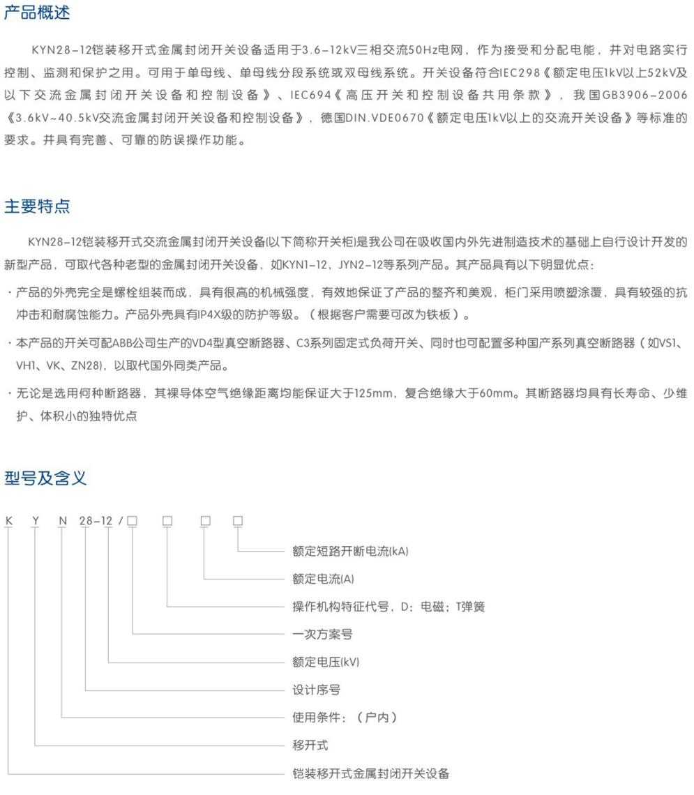 KYN28-12鎧裝移開式交流金屬封閉開關設備